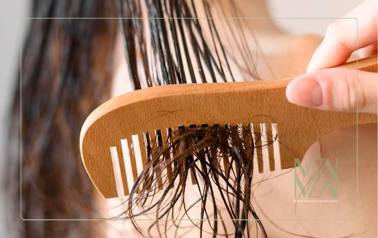 با استفاده از یک شانه با دندانه پهن، موهای خود را به آرامی شانه کنید تا ماسک مو باز شود و بیشتر پخش شود. این کمک می کند تا اطمینان حاصل شود که محصول به طور مساوی توزیع می شود و هر تار از مزایای ماسک برخوردار می شود.
