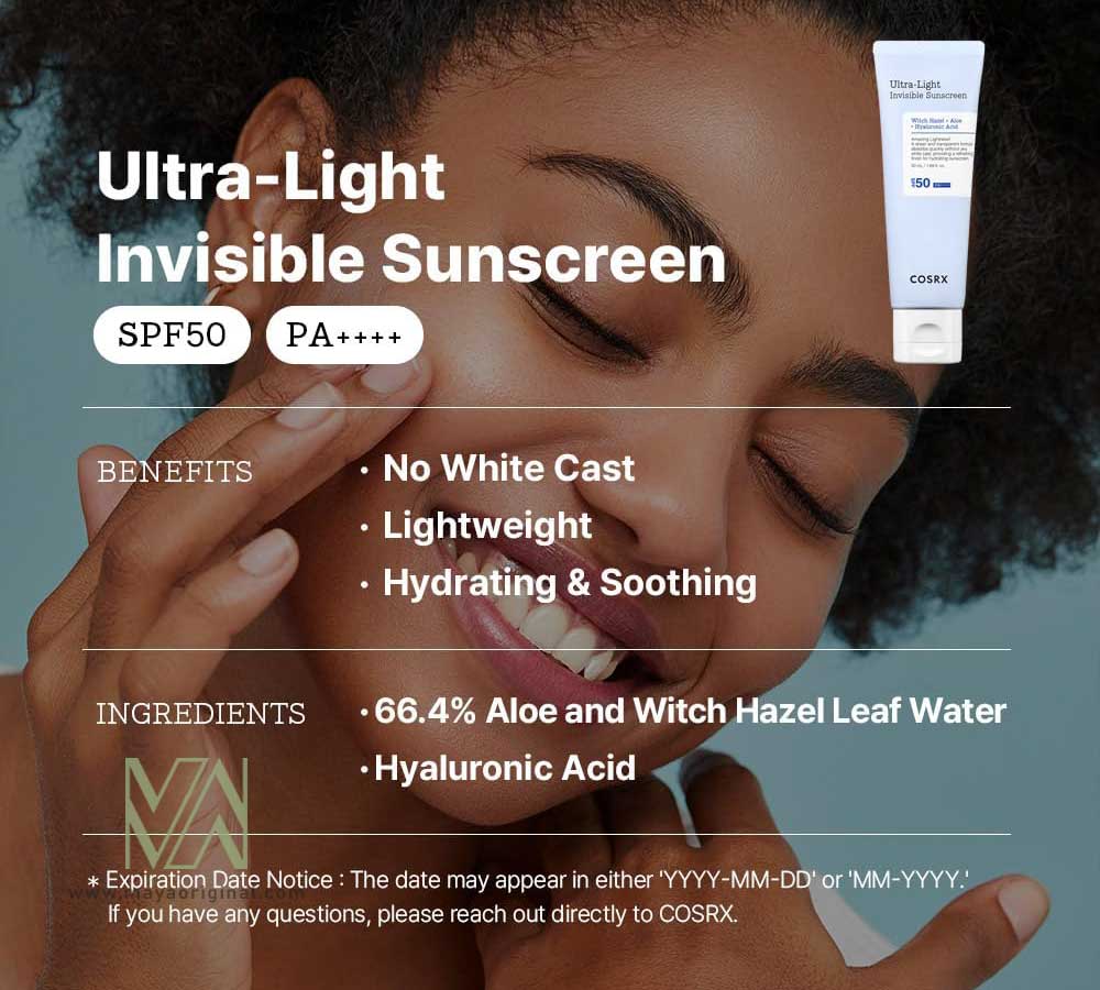ضدآفتاب Ultra-Light Daily Sunscreen از برند COSRX یک انتخاب ایدهآل برای کسانی است که به دنبال محافظتی قوی در برابر آفتاب همراه با احساس سبکی روی پوست هستند. این ضدآفتاب با بهرهگیری از فیلترهای شیمیایی پیشرفته، محافظتی چندگانه در برابر اشعههای مضر UVA، UVB و آلودگی نوری فراهم میکند؛ درحالیکه فرمولاسیون آن بهگونهای طراحی شده که هیچگونه احساس چربی، چسبندگی یا رد سفید روی پوست باقی نمیگذارد.