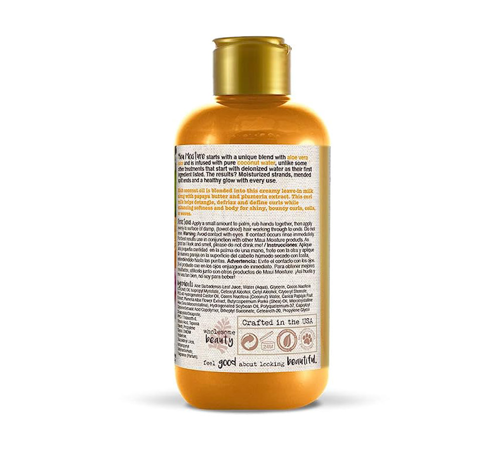 شیر موی مخصوص موهای فر، با عصاره ی روغن نارگیل و پاپایا بر پایه ی آب آلوئه ورا، وز موهای شما را گرفته و فرهایی سالم و خوش‌حالت ایجاد می‌کند. چربی طبیعی روغن نارگیل درخشش زیبایی به فرهای مو می‌دهد و مواد مغذی موجود در عناصر طبیعی این ماسک مو، عمیقا باعث تقویت موهای شما می‌شود. با موهای کراتین و رنگ شده سازگار است زیرا فاقد سولفات میباشد.
